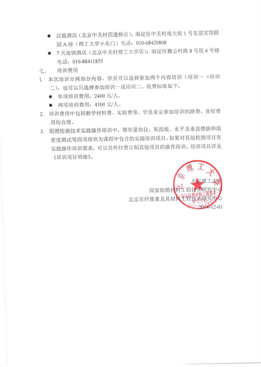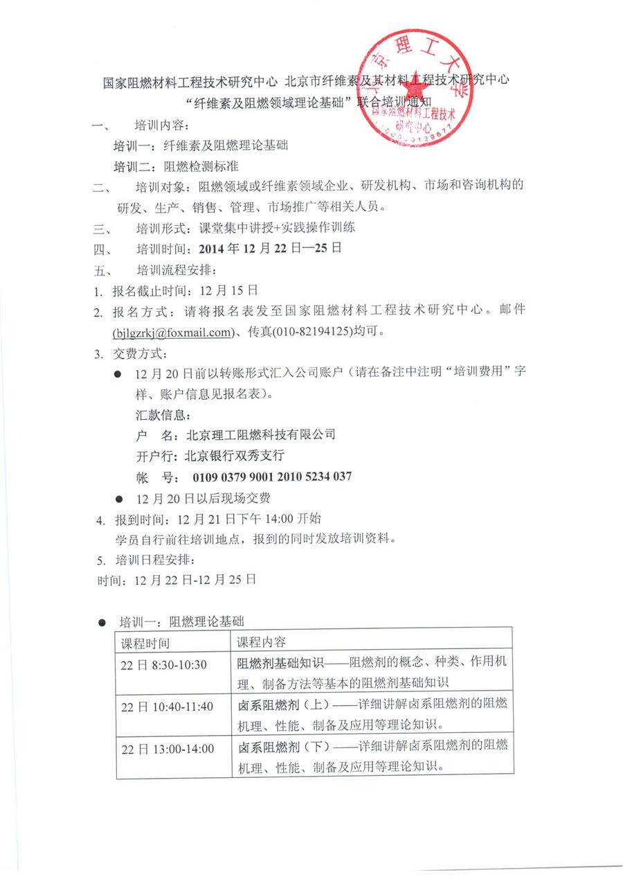 国家阻燃材料工程技术研究中心、北京市纤维素及材料工程技术研究中心联合培训通知